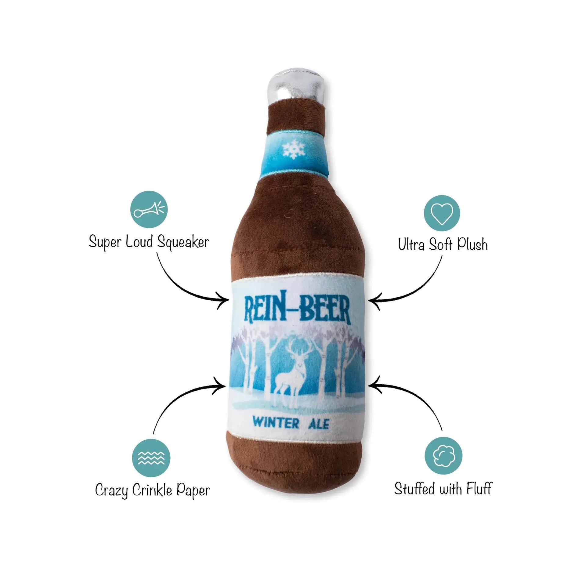 It’s happy hour! This holiday beer toy is made with a super loud squeaker and crazy crinkle paper details. Designed with interactive play in mind, the holiday rein-beer will guarantee hours of squeaky fun. Great for all dog sizes and not intended for aggressive chewers.