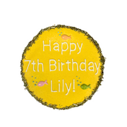 5" round-shaped cake (approximately 1" height) - made to order at least 48 hours in advance. Please limit writing to 3 lines (25 characters in total including spaces).