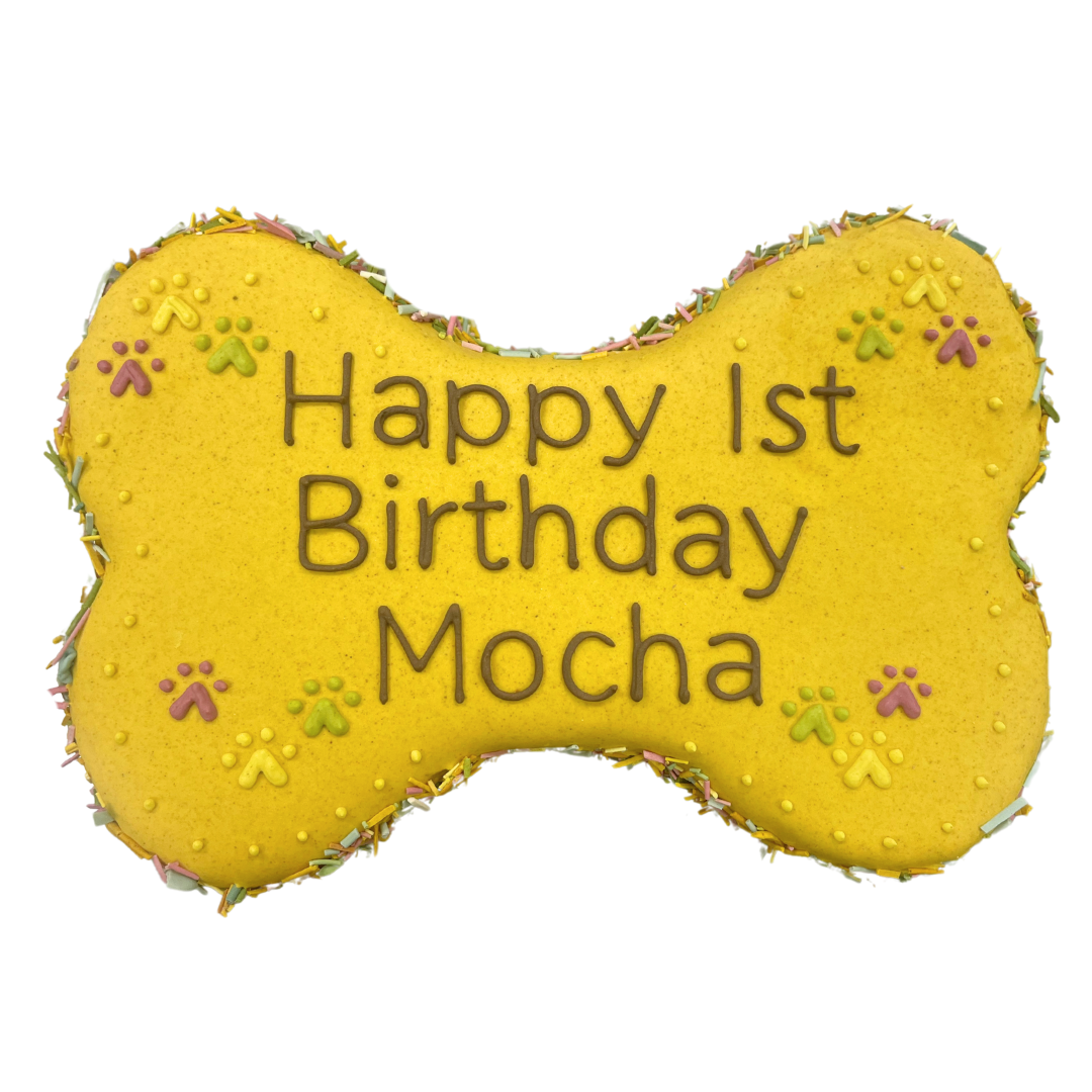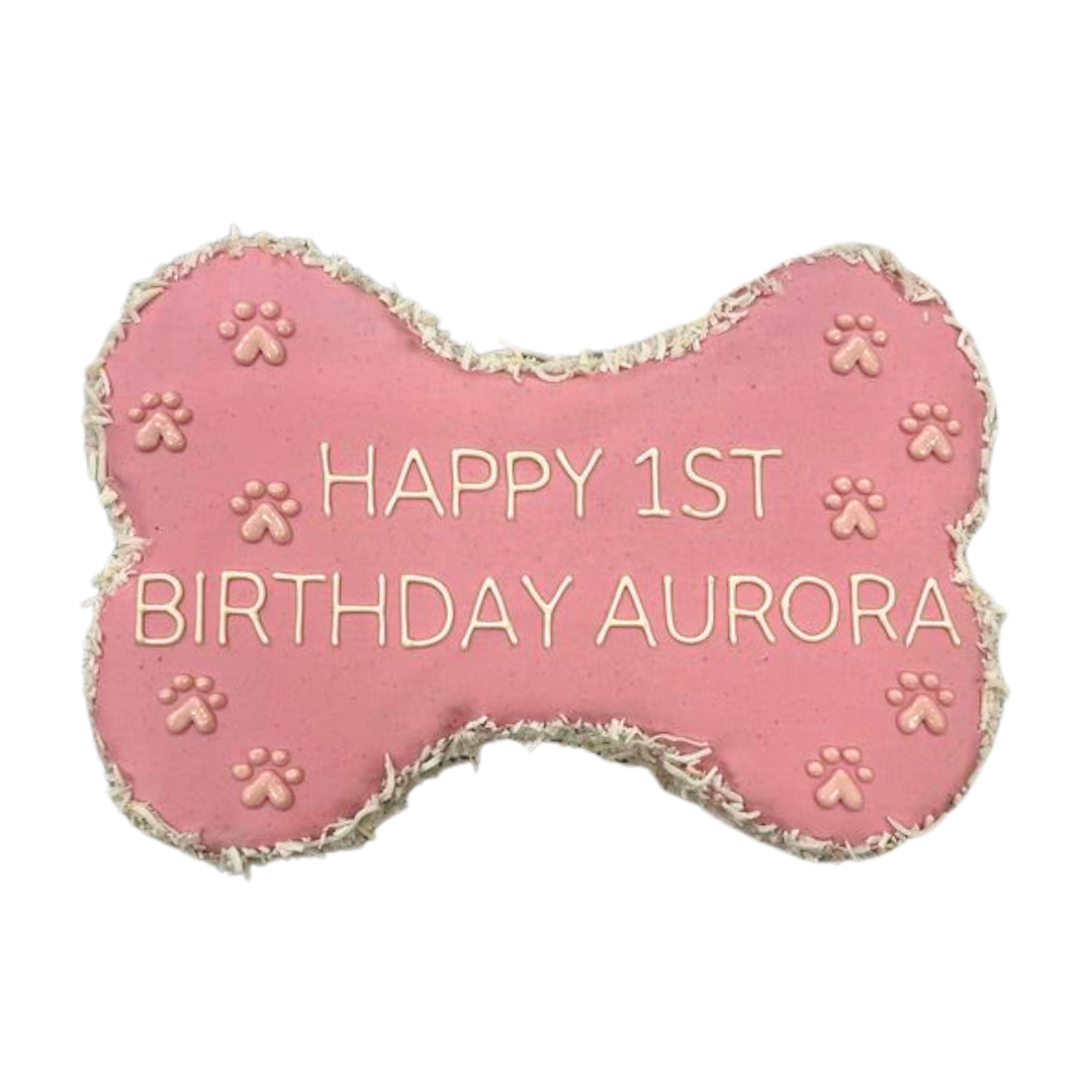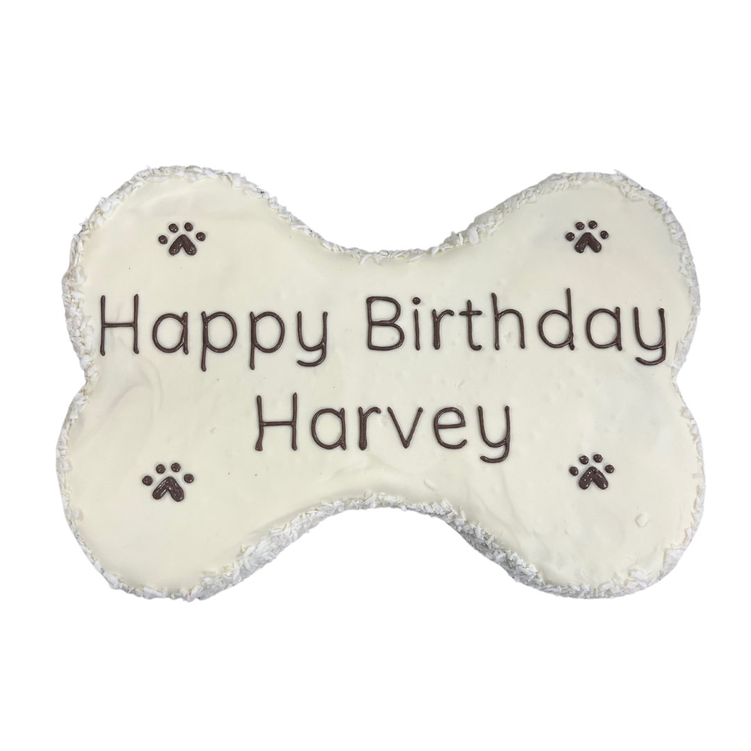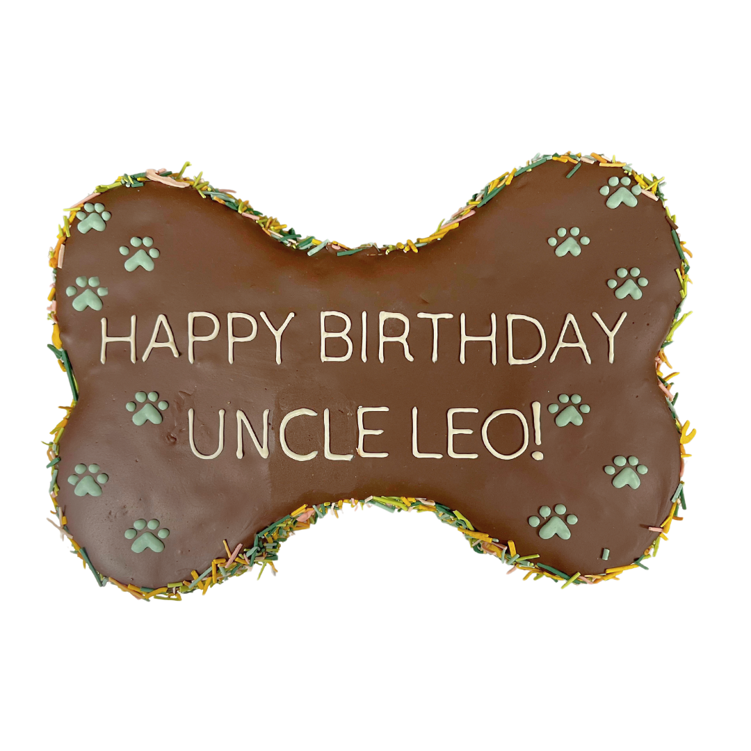 9" bone-shaped cake - made to order at least 48 hours in advance. Please limit writing to 2 lines (25 characters in total including spaces).
