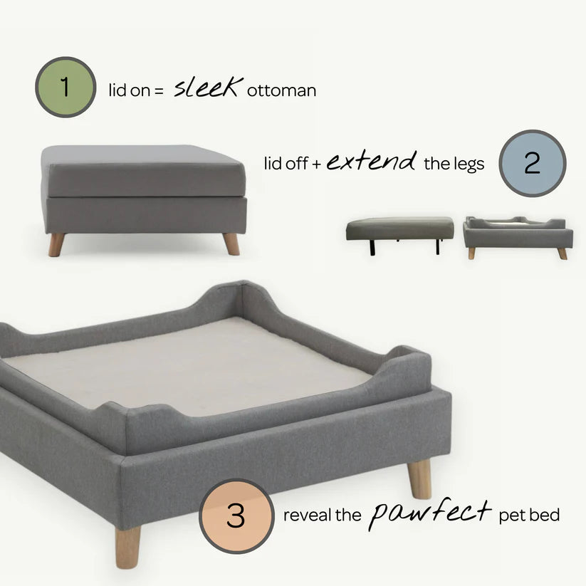 Meet the Otto Pet Ottoman, the ultimate blend of function, fashion, and feline (or pup!) comfort. This clever 3-in-1 piece is more than just a stylish accent—it's a cozy hideaway for your pet, a comfy footrest, and an extra seat when you need it.