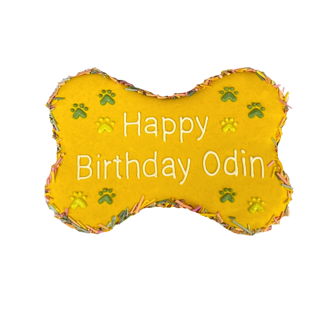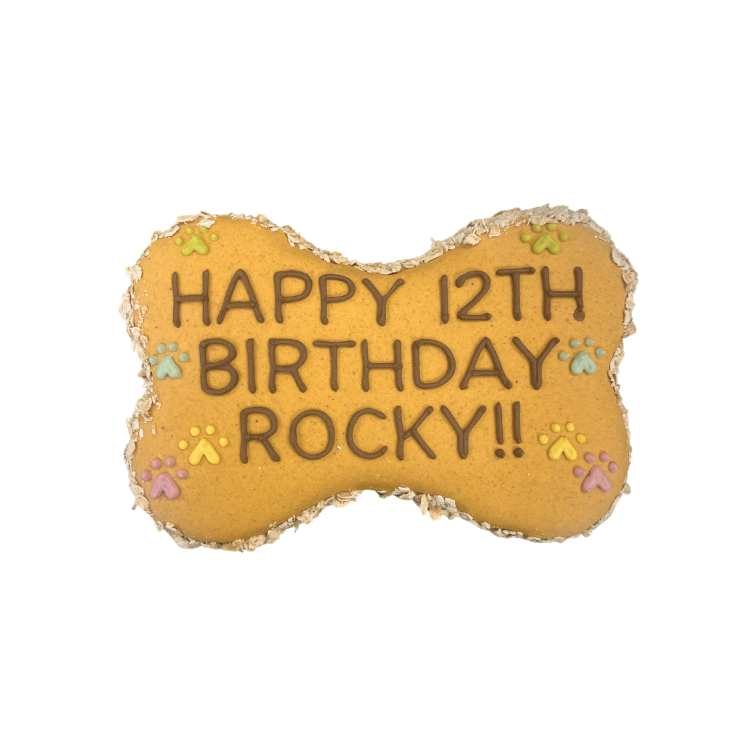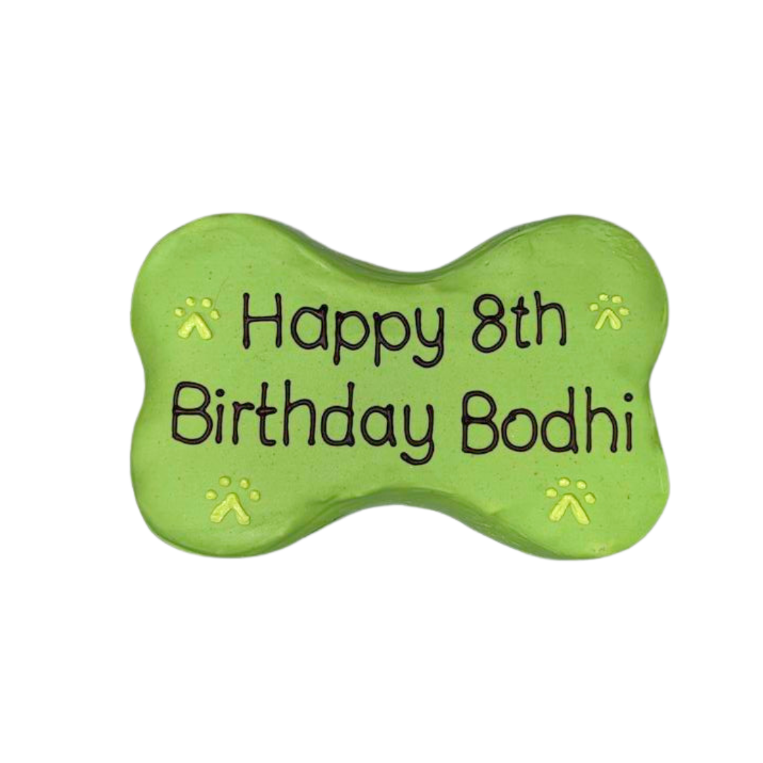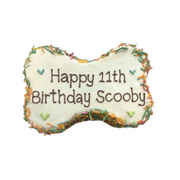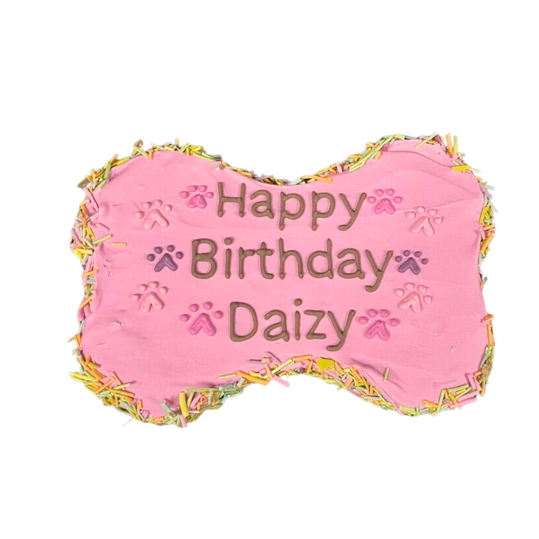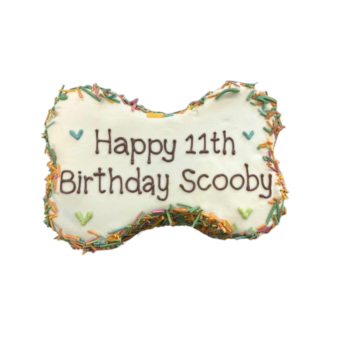 6" bone-shaped cake - made to order at least 48 hours in advance. Please limit writing to 3 lines (10 characters/line).