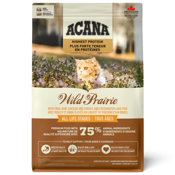 Rich with the highest level of animal protein1, our ACANA™ Highest Protein Wild Prairie Recipe will satisfy your cat completely with its rich poultry ingredients and flavor. Crafted with 75% animal ingredients2 including free-run3 chicken and turkey, and chicken liver, this recipe provides your cat with a variety of nourishing animal protein. This nutrient-dense recipe also helps support key health benefits including your cat’s digestive health, healthy skin & coat, and healthy heart & eyes. Nurture your feline completely with the rich animal protein and nutrition in ACANA Highest Protein Meadowlands Recipe!