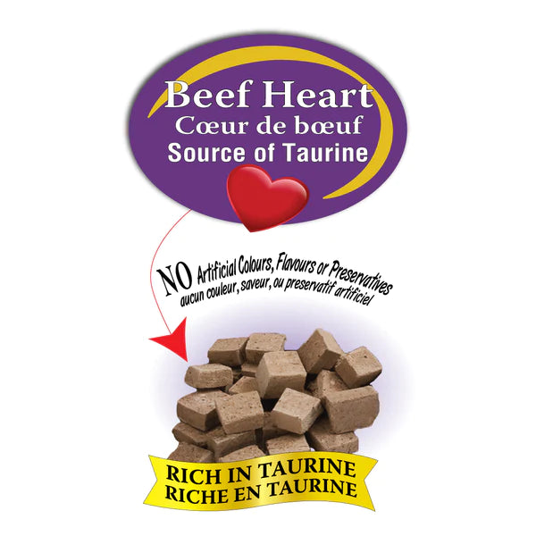 • Beef heart is the most concentrated source of Taurine, necessary for health feline development.