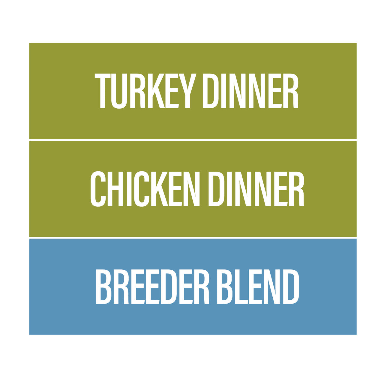 It really is a big deal! Our number 1 best selling Grab n Go for more than a decade. Three unique recipes are great choice when making the transition to raw or as a starting point for your poultry-loving dog's menu. The Big box contains Chicken Dinner, Turkey Dinner and Breeder Blend.