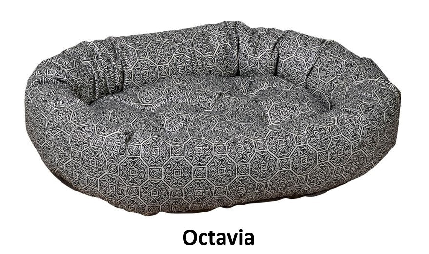 The oval ring creates the feeling of security pets love, while the removable tufted cushion can be used as a crate or travel mat. The circular tufting creates an elegant upholstered look while ensuring fibre does not clump or shift when washing.