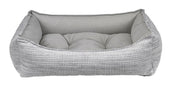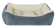 Stylish two-tone fabric combination and European style "pinched edge" trim detail. Removable tufted center cushion. Generous sizing maximizes sleeping area. Great design for older or arthritic dogs.