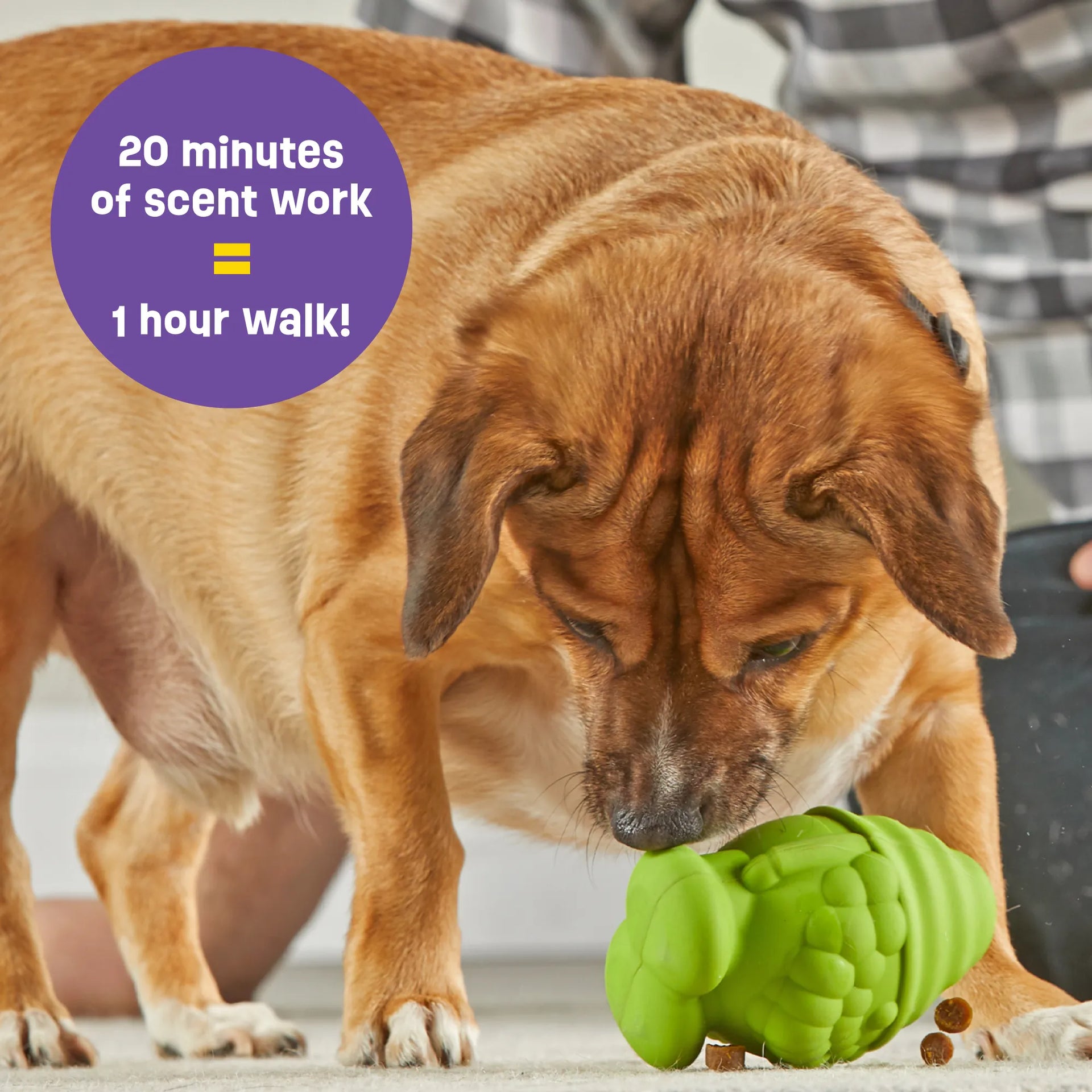 Experts agree that sniffing and licking activities promote enrichment and energy burning in dogs, making our treat dispenser an essential addition to your pup's daily routine. Just 20 minutes of sniffing is said to be equivalent to an hour-long walk—talk about a win-win!