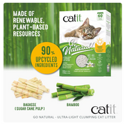 Say hello to your new all-time favourite, light as a feather cat litter! Catit Go Natural Ultra-Light Litter is made of a mixture of natural bamboo fibers and sugar cane pulp (also known as bagasse), both upcycled post-consumer materials.