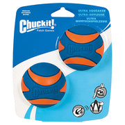 A Chuckit!® Ultra Squeaker Ball is sure to make playtime more enjoyable for you and your pet! This first-ever squeaker ball from Chuckit! entices play with fun sounds and high bounce. The textured surface helps your dog to get a secure grip and the durable rubber construction is easy to clean. Great for dogs who also love to play in the water, the highly buoyant design floats on the water making it perfect for the pool or lake. The Ultra Squeaker Ball is launcher compatible for use with Chuckit! Launchers and offers a new spin on the Ultra Ball® - your dog's favorite! Modeled in squeaker for improved safety. Available in three sizes - small, medium and large.