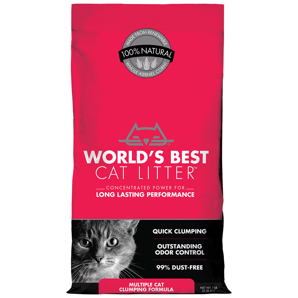 Say goodbye to mediocre clay pellets and hello to the World's Best Cat Litter. This powerful litter instantaneously traps odors left behind by your feline friend, and forms tight, easy-to-scoop clumps on contact. That means you can spare your home from that foul ammonia smell and cleanup becomes a breeze! A natural, compressed corn formula is completely free of silica dust, so you and your family can breathe easy. This 99% dust-free litter won't disturb your pouring with a dusty cloud! Plus, this formula is environmentally friendly—totally flushable, and safe for both septic and sewer systems. Feel good about what's in your litter box with this pet, people and planet friendly litter.