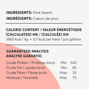 Fuel your dog’s training sessions with ¼ inch of pure protein. These single ingredient, North American freeze-dried Pork Hearts contain essential B vitamins, zinc and iron which keep your whole dog healthy and happy.