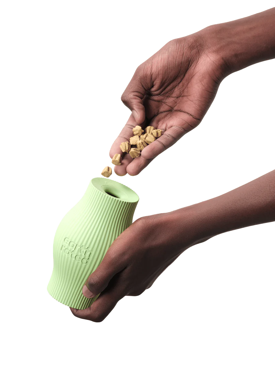 Treat your dog to the joy of play. This treat toy was designed to let your dog paw, bounce and nibble their heart out in pursuit of a carefully-placed kibble or treat, providing mental stimulation. Its wobbly, rolling shape provides interactive stimulation and keeps dogs engaged. Your dog has to put in some work to get the kibble or treat out of the toy, and when they do, they get to enjoy a sense of accomplishment along with their well-earned goodie.