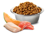 Ingredients: Salmon, dehydrated salmon, sweet potato, cod, dehydrated cod, herring oil, dehydrated herring protein, pea fibre, dried carrot, alfalfa meal, inulin, fructo-oligosaccharides, yeast extract (source of manno-oligo-saccharides), dried cantaloupe melon, dried blueberry, dried apple, dried spinach, psyllium husks and seeds, dried pomegranate, sodium chloride, potassium chloride, dried brewers' yeast, turmeric, aloe vera extract, glucosamine, chondroitin sulphate.