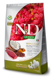 N&D Quinoa SKIN&COAT - Duck, quinoa, coconut and turmeric recipe for adult dogs is formulated to meet the nutritional levels established by the AAFCO Dog Food Nutrient Profiles for maintenance.
