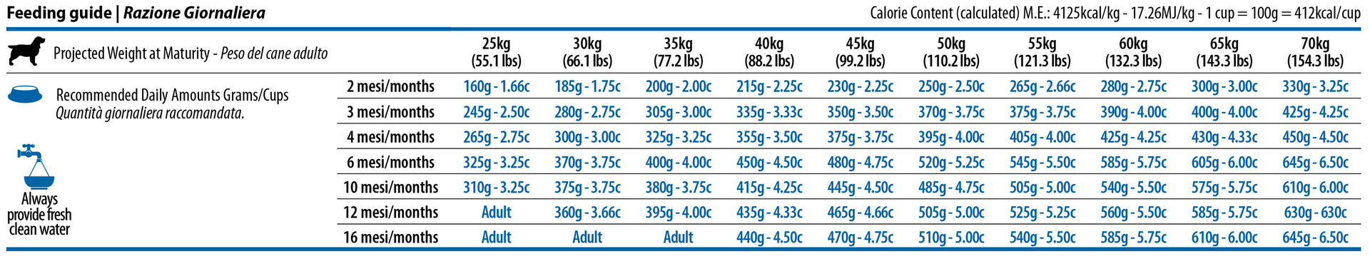 Formulated to meet the nutritional levels established by the AAFCO Dog Food Nutrient Profiles for All Life Stages including growth of large size dogs (70 lb. or more as an adult).