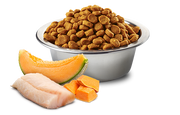 Ingredients: cod, dehydrated cod, sweet potatoes, herring oil, dehydrated herring, dried pumpkin, dehydrated shrimp (source of glucosamine hydrochloride and chondroitin sulfate), pea fiber, dried carrot, suncured alfalfa meal, inulin,
