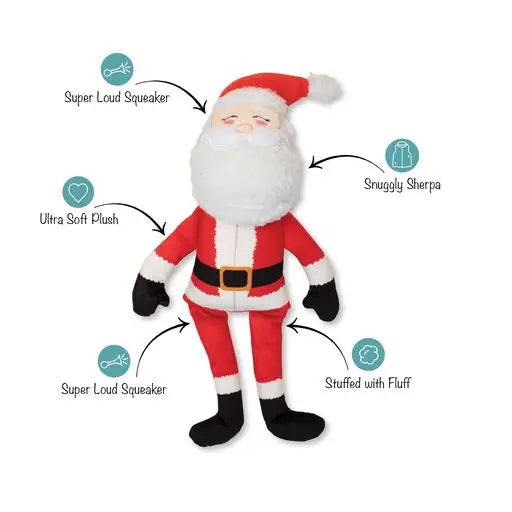 The Most Wonderful Time Of The Year! Petshop by Fringe Studio “Santa's Back in Town” is perfect for playtime, anytime. Made with a super loud squeaker and stuffed with fluff , this toy was designed with interactive play in mind. Great for all sized dogs and not intended for aggressive chewers.