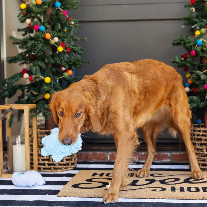 Walking in a winter wonderland! Our “Yeti for Us?” 2 piece plush toy set is perfect for playtime, anytime. Made with a super loud squeaker and crazy crinkle paper in each toy, this set was designed with interactive play in mind. Whether you squeak, crinkle, or toss them, your pup will have unbelievable fun. Great for all dog sizes and not intended for aggressive chewers.