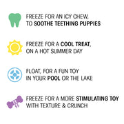 Our Freeze ‘n Float toys are back, with new characters we all love! Each toy is made with a soft scuba style neoprene fabric that allows the toy to float, or soak up water to hold inside and freeze. Our Freeze ‘n Float toys are great to bring to the pool, lake or beach! You won’t have to worry about losing the toy in water, since they float. Have a teething puppy or enduring an extra hot day? Simply soak the toy in water, squeeze out the excess and throw it in the freezer for an icy chew or cuddle.