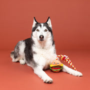 Nice to meat you! Our “You're the Bun That I Want” plush toy is perfect for playtime, anytime. This toy features crazy crinkle paper, tuggable rope, and a hidden spiky TPR squeaky ball inside the sun. Once your pup chews through the plush, they'll love playing with the hidden chew toy that also helps clean teeth. Designed to encourage playful and positive chewing habits, your pup will relish every moment with this toy. Great for all dog sizes and not intended for aggressive chewers.