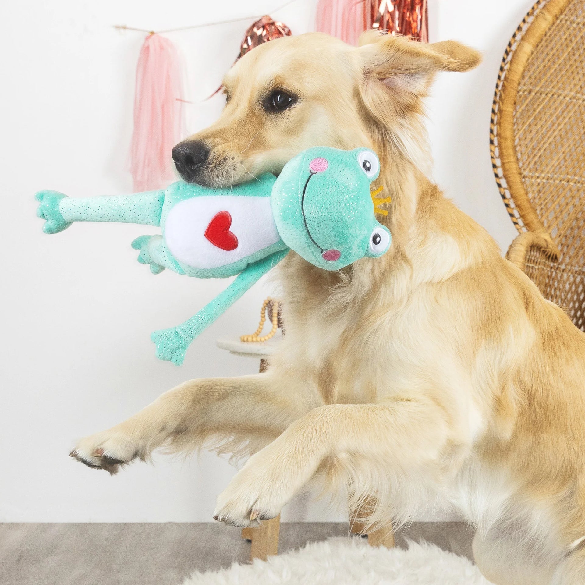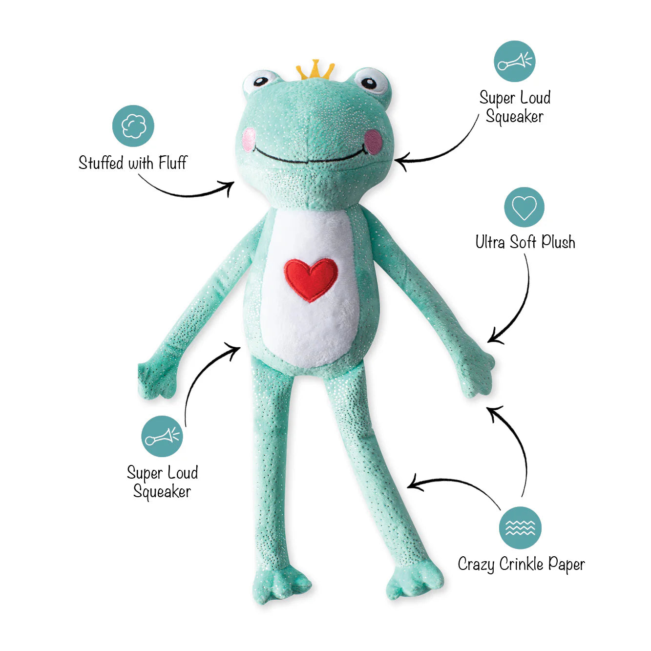 Take a leap! Our “Prince Charming” plush toy is perfect for playtime, anytime. Made with 2 super loud squeakers and crazy crinkle paper, your pup will find this toy toad-ally awesome.