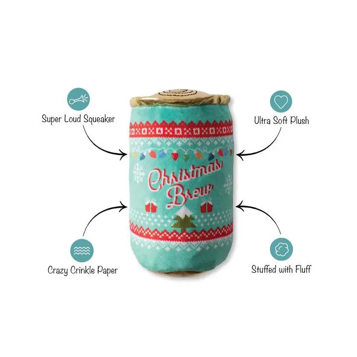Bring on the Christmas cheer with PetShop by Fringe Studio’s festive "Christmas Brew" plush dog toy! Shaped like a holiday-themed beer can, this soft plush toy is designed to bring joy to dogs of all sizes. Featuring an extra loud squeaker and crinkle paper inside, it’s perfect for interactive play like fetch or tug-of-war. This cute and quirky toy will have your dog wagging with excitement all season long. Just remember, it's not suited for aggressive chewers—this brew is all about fun, not toughness!