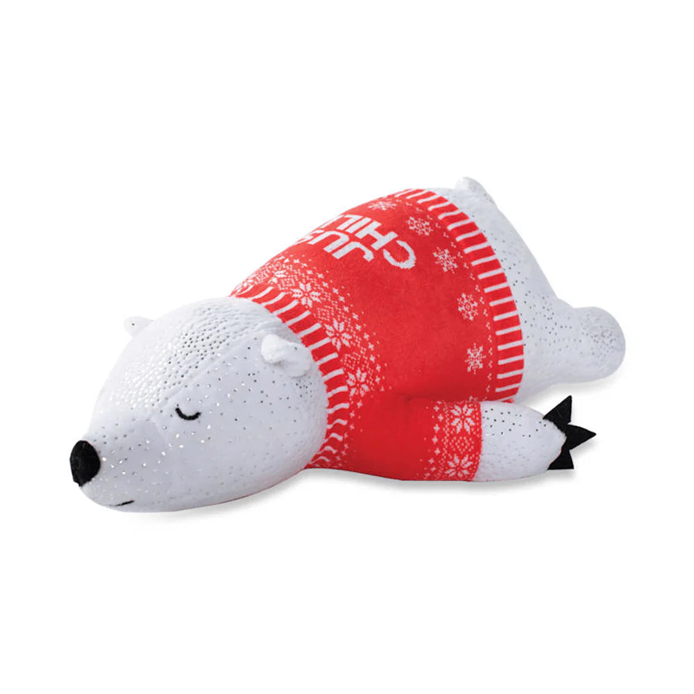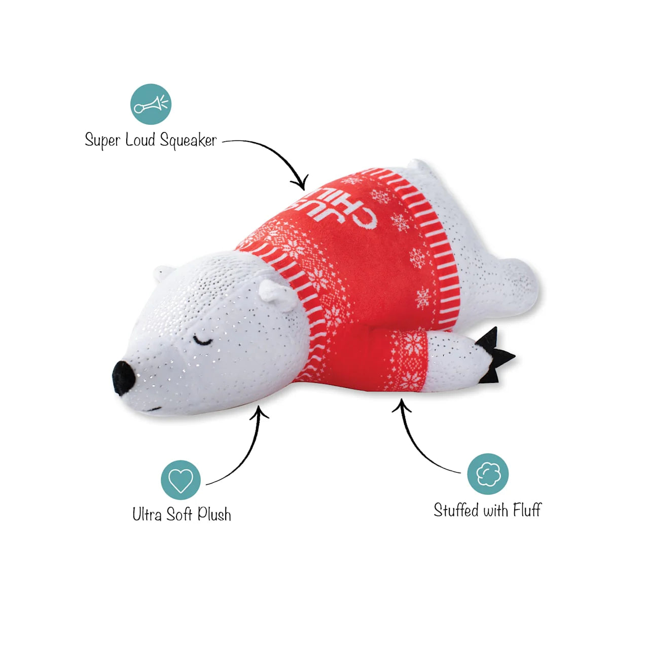 Give your dog a festive friend for the holidays with PetShop by Fringe Studio Chill Mode Plush Dog Toy. This plush toy features a jolly polar bear relaxing in a festive holiday sweater. Your canine companion will love discovering the extra loud internal squeaker that is sure to tempt them to play an exciting game of fetch or catch.