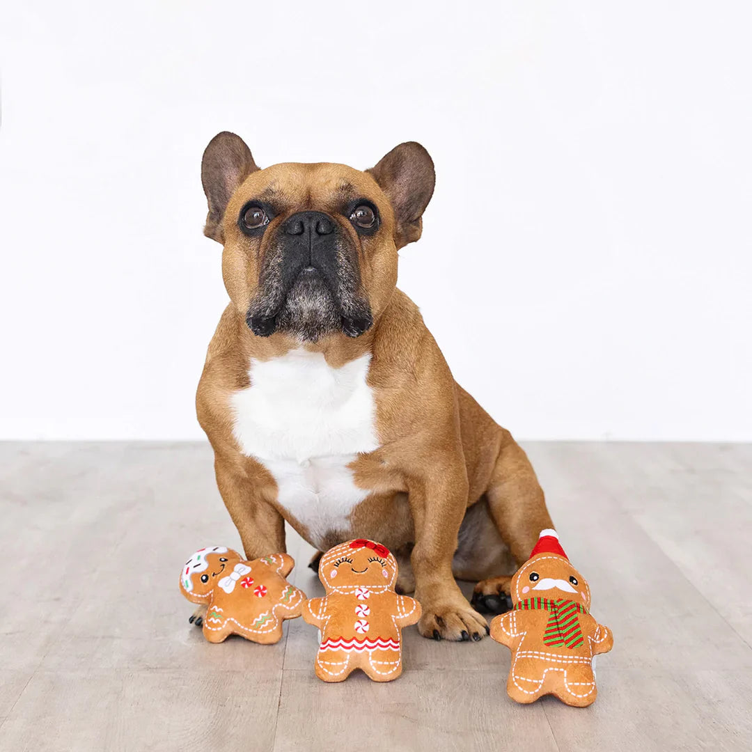 Bite Me! Petshop by Fringe Studio “Gingerbread Everything” mini toy set is perfect for the pup that likes to play all day. Made with a loud squeaker in each toy and stuffed with fluff, your pup will know playtime will always be sweeter with this trio of toys.
