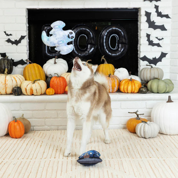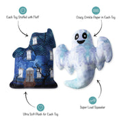 A boootiful home! Our “Haunted Manor”” 2 piece plush toy set is perfect for playtime, anytime. Made with a super loud squeaker and crazy crinkle paper in each toy, this set was designed with interactive play in mind. Whether you squeak, crinkle, or toss them, your pup will be haunting to play with them all day long.