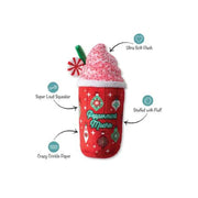 - Holiday-themed plush dog toy with “Peppermint Mocha” with festive Christmas decoration design