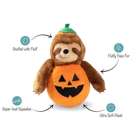 Give your pooch a festive friend for Halloween with PetShop by Fringe Studio Sloth-O-Lantern Plush Dog Toy. This plush toy features a sloth nestled inside a festive pumpkin. Your canine companion will love discovering the extra loud internal squeaker that is sure to tempt them to play an exciting game of fetch or catch.