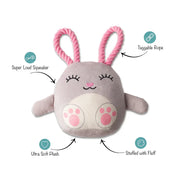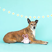 Hip hop hooray! Petshop by Fringe Studio “Ear-resistible!” is perfect for playtime, anytime. Made with a super loud squeaker and tuggable rope, this toy was designed with interactive play in mind. Whether you squeak, tug or toss it, your pup is sure to get their bunnies worth.