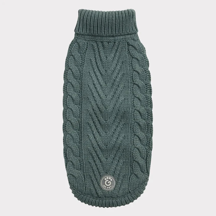 The GF PET® Chalet Sweater is chunky and snuggly soft. The high turtleneck, ribbed arm holes and sculpted body shape make for a super comfy fit for both boy and girl doggies. A timeless and luxurious cable knit classic!