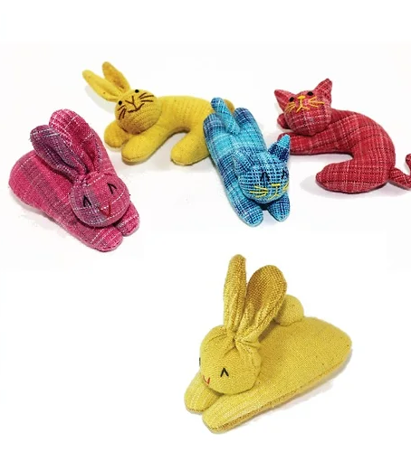 Bring on the zoomies! These playful, catnip-infused toys come in four adorable styles—Nip-Naps Bunny, Curly Bunny, Nip-Naps Kitty, and Curly Kitty -- each handcrafted with colorful cotton fabric and soft synthetic fill.