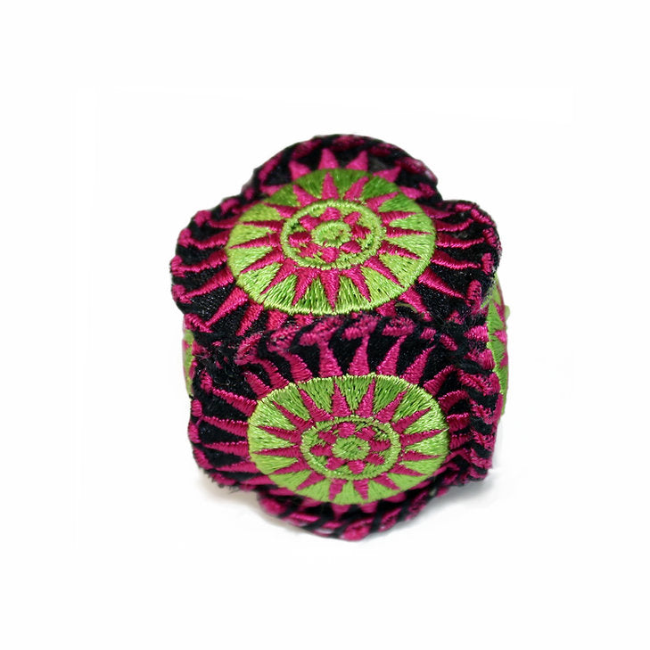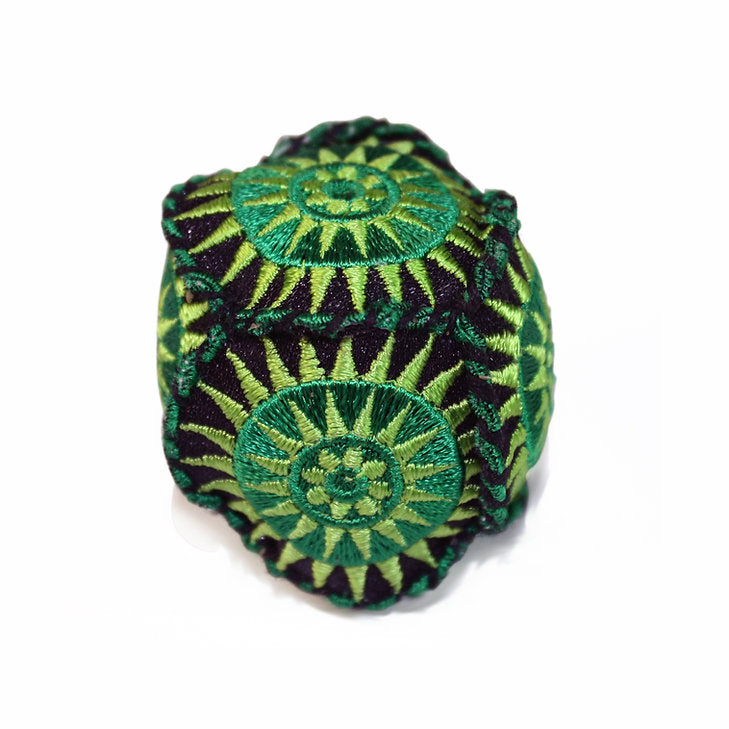 Totem balls are made of colorful cotton fabric and a synthetic filler.