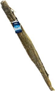 Our 100% natural and edible Icelandic Cod Long Skin Fish Sticks are single ingredient and contain no additives, preservatives or supplements. The Cod Long Skins are 14-17" long.