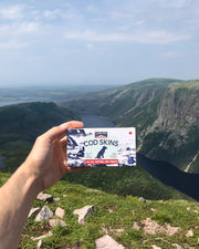 Each cod skin was sourced from a certified sustainable fish plant in Newfoundland & Labrador, Canada. Hand rolled and air-dried in the rural community of Trinity Bonavista Bay.