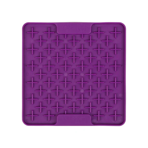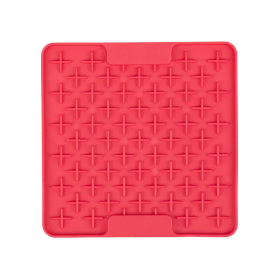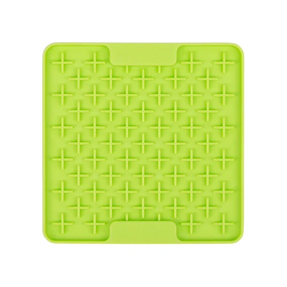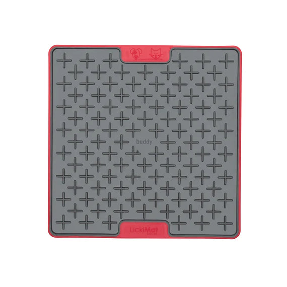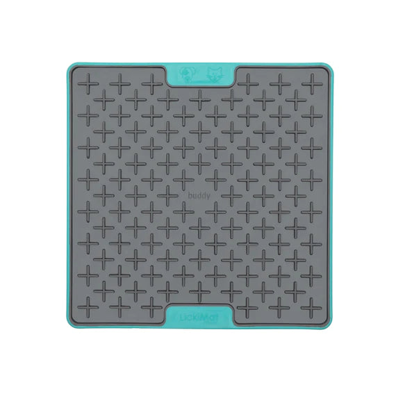 LickiMat Buddy, with its cross maze design, is perfect for small kibble, raw foods and sticky treats.