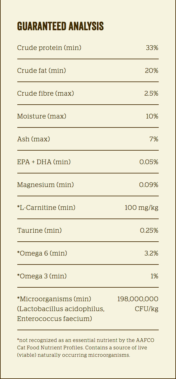 *not recognized as an essential nutrient by the AAFCO Cat Food Nutrient Profiles. Contains a source of live (viable) naturally occurring microorganisms.