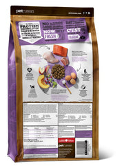 De-boned turkey, potatoes, peas, pea fibre, potato flour, whole dried egg, natural flavour, flaxseed, canola oil (preserved with mixed tocopherols), de-boned salmon, de-boned duck, alfalfa, coconut oil (preserved with mixed tocopherols), calcium carbonate, tomato, apples, carrots, pumpkin, sweet potatoes, squash, bananas, blueberries, cranberries, blackberries, pomegranate, papayas, lentils, broccoli, cottage cheese, DL-methionine, taurine, choline chloride, sodium chloride, dried chicory root, phosphoric acid, vitamins (vitamin E supplement, niacin, L-ascorbyl-2-polyphosphate (a source of vitamin C), thiamine mononitrate, biotin, vitamin A supplement, d-calcium pantothenate, beta-carotene, riboflavin, pyridoxine hydrochloride, vitamin B12 supplement, vitamin D3 supplement, folic acid.), minerals (zinc proteinate, ferrous sulphate, zinc oxide, iron proteinate, copper sulphate, sodium selenite, copper proteinate, manganese proteinate, manganous oxide, calcium iodate.), dried Lactobacillus acidophilus fermentation product, dried Enterococcus faecium fermentation product, L-lysine, potassium chloride, yucca schidigera extract, L-carnitine, dried rosemary. Microorganisms (min) (Lactobacillus acidophilus, Enterococcus faecium) 198,000,000 CFU/kg.