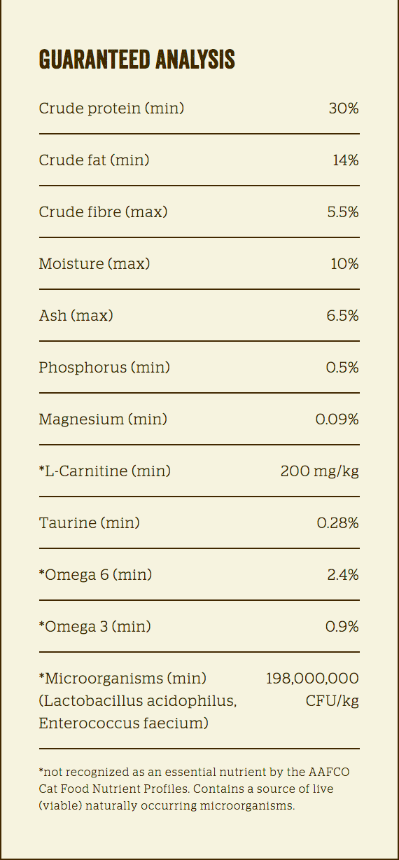 *not recognized as an essential nutrient by the AAFCO Cat Food Nutrient Profiles. Contains a source of live (viable) naturally occurring microorganisms.