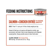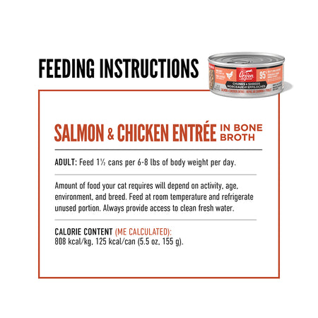 ORIJEN Chunks & Shreds Salmon & Chicken Entrée in Bone Broth Complete Adult Cat Food is formulated to meet the nutritional levels established by the AAFCO Cat Food Nutrient Profiles for maintenance.