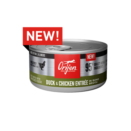 ORIJEN® Duck & Chicken Entrée in Bone Broth Adult Cat Food is formulated to meet the nutritional levels established by the AAFCO Cat Food Nutrient Profiles for maintenance.