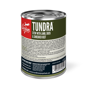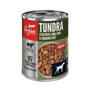 ORIJEN® Premium Wet Dog Food is a nourishing wet food with rich inclusions of meat shreds that will help your dog thrive. Packed with 95%* premium animal ingredients, Tundra Stew includes fresh or raw animal ingredients like lamb, beef and duck. This includes succulent WholePrey ingredients like organs and bone that add a source of essential vitamins, minerals and amino acids. Feed your dog ORIJEN Premium Wet Dog Food alone to add moisture and nourishment to their diet, or add it on top of their favorite ORIJEN kibble for a nutritious addition at mealtime.
