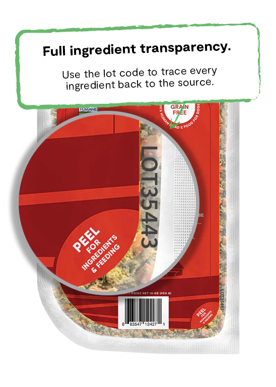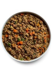 Ingredients: Beef, Carrots, Kale, Beef Liver, Zucchini, Butternut Squash, Pumpkin, Water, Flaxseed, Tricalcium Phosphate, Salt, Salmon Oil, Potassium Chloride, Sunflower Oil, Coconut Oil, Chia Seeds, Chicory Root, Choline Chloride, Vitamins (Vitamin A Supplement, Vitamin D3 Supplement, Vitamin E Supplement, D-Calcium Pantothenate, Thiamine Mononitrate, Riboflavin, Folic Acid, Vitamin B12 Supplement), Minerals (Zinc Amino Acid Chelate, Iron Amino Acid Chelate, Copper Amino Acid Chelate, Manganese Amino Acid Chelate, Selenium Yeast), Dried Kelp, Turmeric, Cinnamon