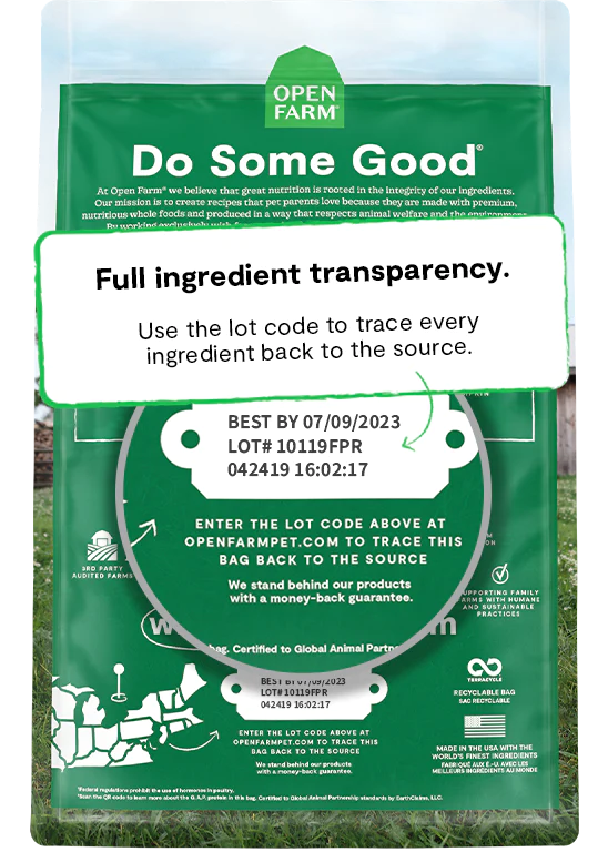 *Not recognized as an essential nutrient by the AAFCO Cat Food Nutrient Profile for all life stages. Open Farm Homestead Turkey & Chicken recipe is formulated to meet the nutritional levels established by the AAFCO dog food regulations for all life stages.