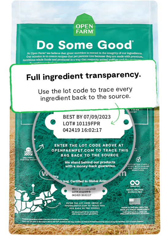 Open Farm Puppy Chicken & Salmon Recipe is formulated to meet the nutritional levels established by the AAFCO Dog Food Nutrient Profiles for All Life Stages including growth of large size dogs (70 lb. or more as an adult).