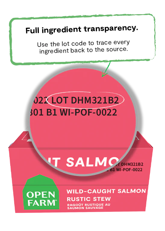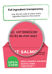 Open Farm Wild-Caught Salmon Rustic Stew is intended for intermittent or supplemental feeding only.