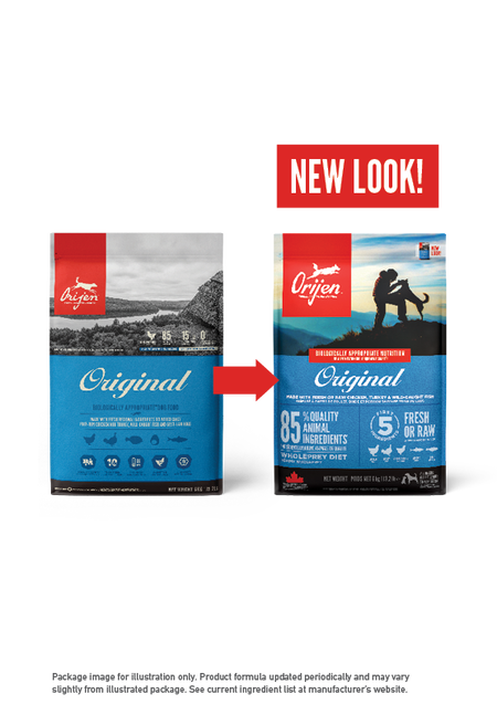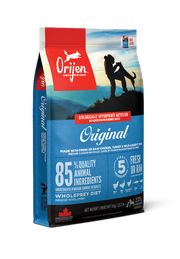 Help your dog thrive with the power of protein-rich recipes that provide peak nourishment. Dogs are ancestral carnivores, so they need a Biologically Appropriate diet rich and varied in whole animal ingredients. ORIJEN® Original diet is packed with 85%1 quality animal ingredients like fresh or raw free-run2 chicken and turkey, and wild-caught or sustainably farmed fish. Packed with WholePrey animal ingredients like organs and bone, ORIJEN food is made with the most nutrient-dense, succulent parts of the prey to deliver the nutrition dogs need. The result is a diet for your canine companion that is beyond comparison.