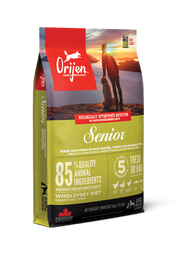 Help your dog thrive with the power of protein-rich recipes that provide peak nourishment. Dogs are ancestral carnivores, so they need a Biologically Appropriate diet rich and varied in whole animal ingredients. ORIJEN® Senior diet is crafted specifically for your senior dog to help them stay healthy by supporting lean muscle mass and weight maintenance. Packed with WholePrey animal ingredients like organs and bone, ORIJEN food is made with the most nutrient-dense, succulent parts of the prey to deliver the nutrition dogs need. With 85%1 quality animal ingredients and a freeze-dried liver coating, this diet is beyond comparison.